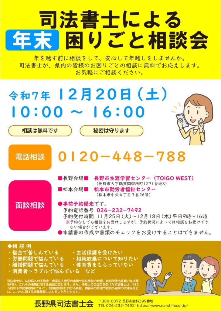 お問い合わせ:長野県司法書士会(TEL026-232-7492)